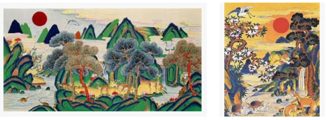 6. 십장생의 10가지 요소에는 바위, 물, 산, 해, 구름, 거북, 학, 사슴, 소나무, 불로초가 있습니다.